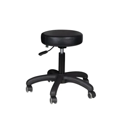 Удобна козметична табуретка, стабилна на петзвездна основа, с гумирани колела. Основна част от обзавеждането в салон за красота.
